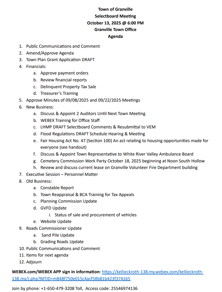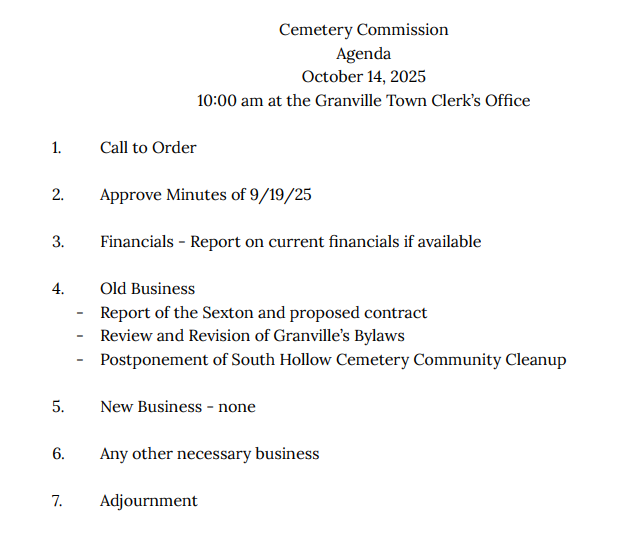 (NOTE: The above information taken from a 6/27/24 VLCT website publication. Please inquire with the Town Clerk for the Complaint Form the Town of Granville uses for the Open Meeting Law Complaint Process.)