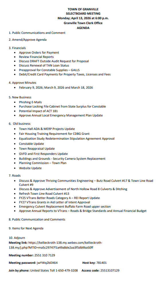 NOTE: Granville meeting video and audio recordings can be found by linking to Agendas and Minutes here.